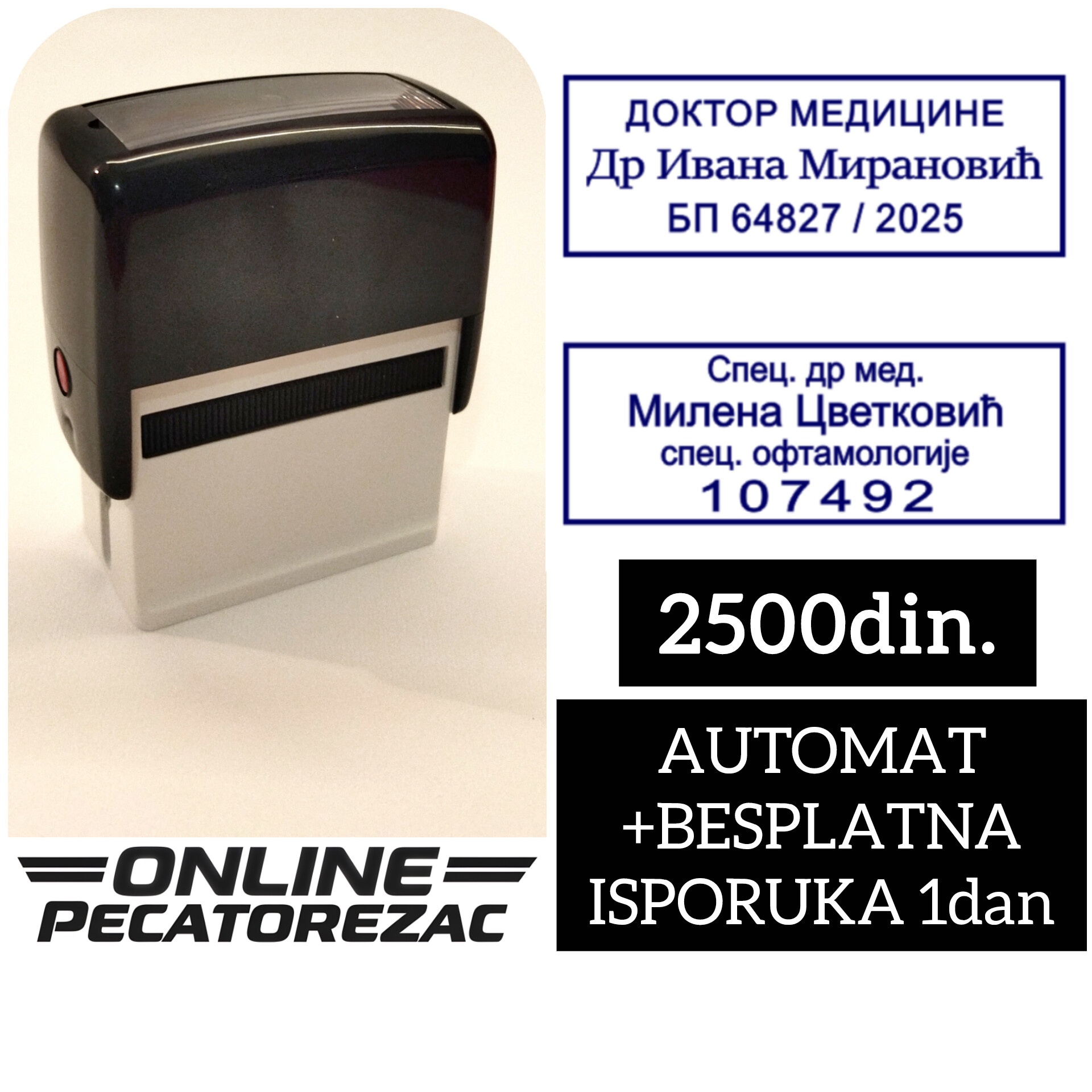 · Faksimil, doktorski – pravougaoni pečat dimenzija 47×18mm